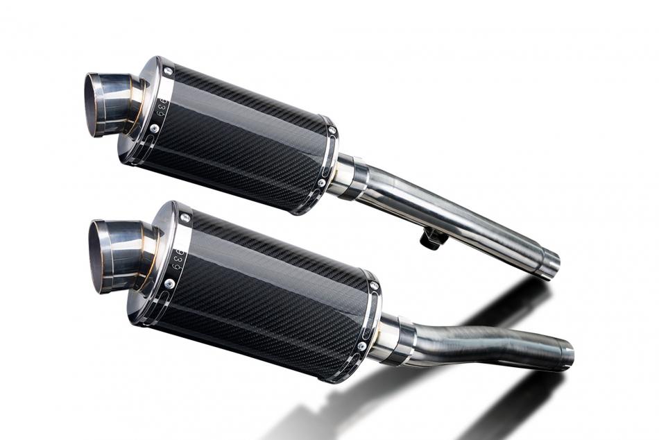 Replacement Silencer Kit for Triumph with Delkevic DS70 225mm Oval Carbon Fibre Silencer. Delkevic silencers are handcrafted from the highest quality materials to enhance your motorcycle in both performance and looks. We guarantee to improve your riding experience at an unbeatable price. The vast majority of our silencer kits come with all gaskets needed.