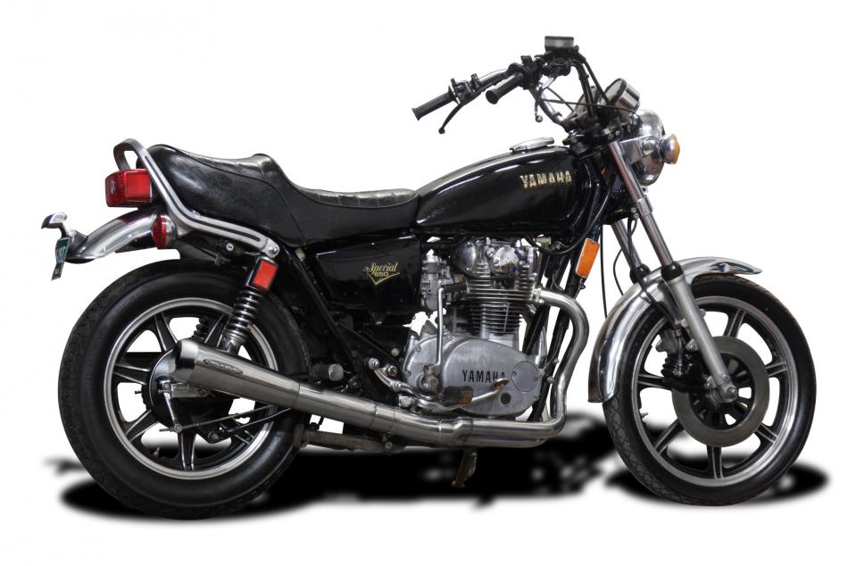 XS650S ALL MODELS 1978-1986 / COMPLETE 2 into 1 EXHAUST SYSTEM CLASSIC REVERSE-CONE SILENCER 304 STA