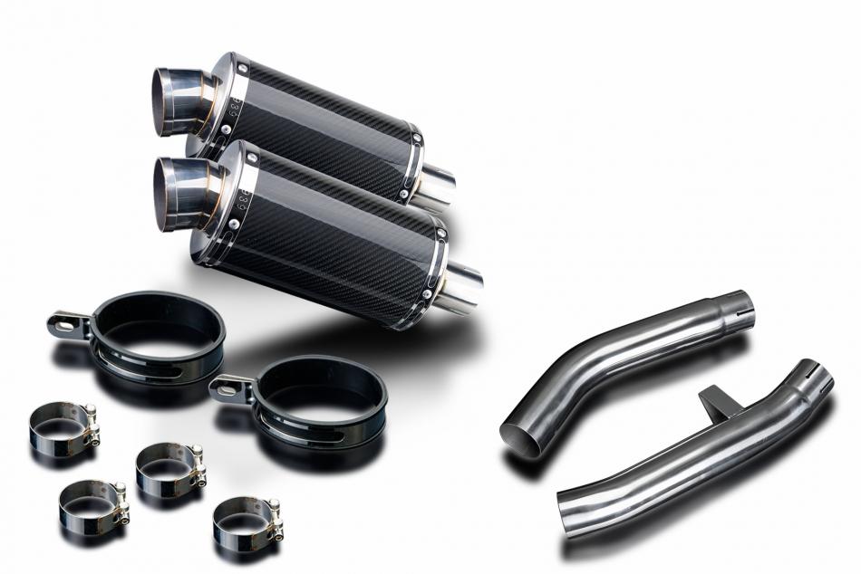Replacement Silencer Kit for Yamaha FJR1300 (2001-2005) with Delkevic DS70 225mm Oval Carbon Fibre Silencer. Delkevic silencers are handcrafted from the highest quality materials to enhance your motorcycle in both performance and looks. We guarantee to improve your riding experience at an unbeatable price. The vast majority of our silencer kits come with all gaskets needed.