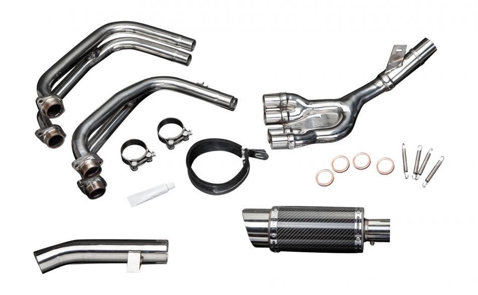 Complete exhaust system for Yamaha FZS600 FAZER (1998-2003) with Delkevic Mini 200mm Round Carbon Fibre Silencer. All Delkevic complete systems come with gaskets (where needed) clamps. We manufacture all our exhaust components in our own factory employing the most stringent quality control procedures.