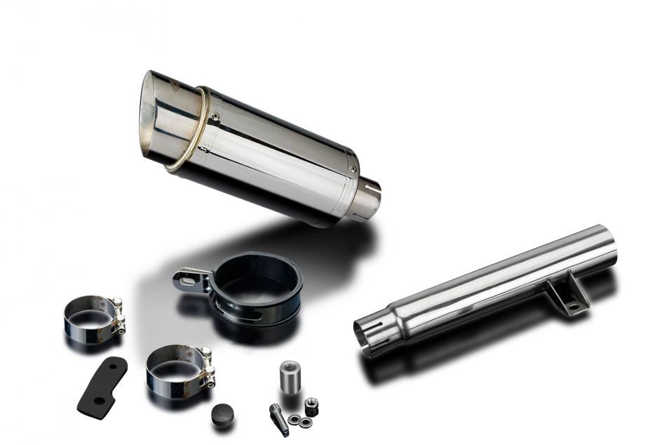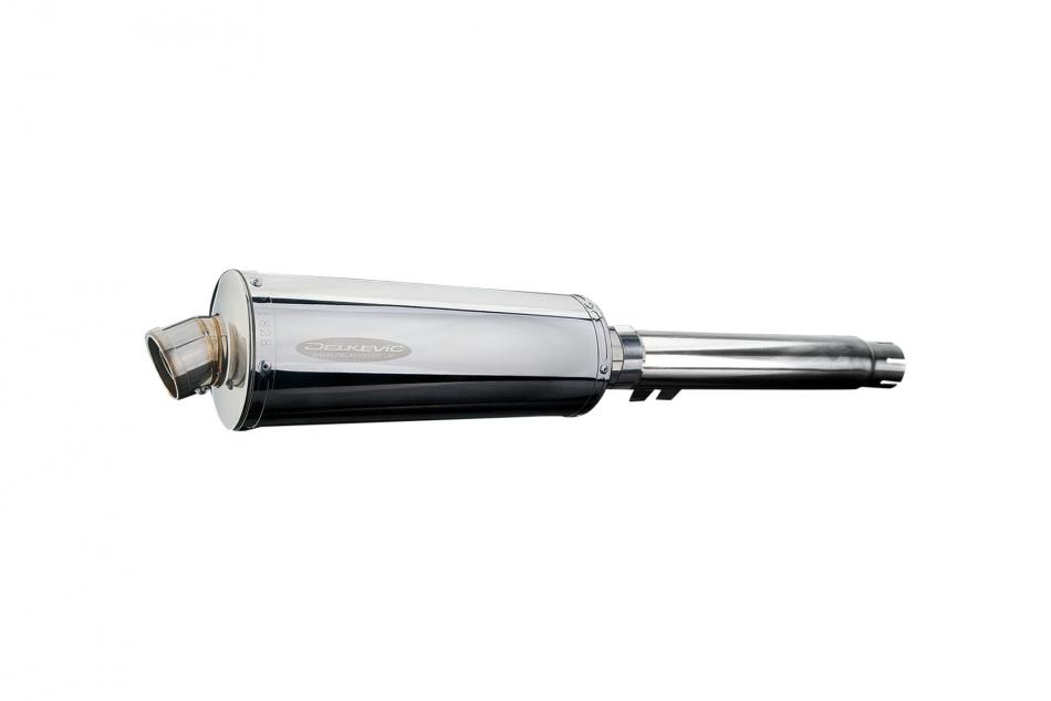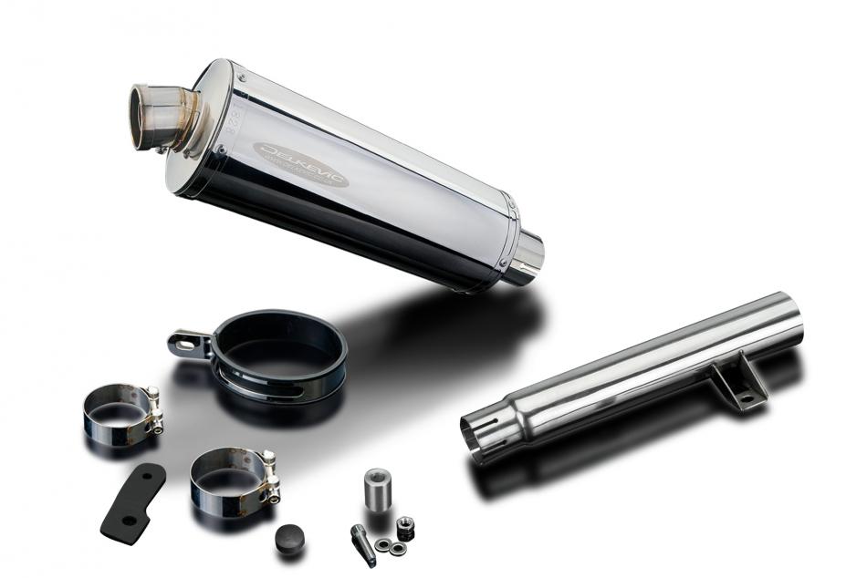 Replacement Silencer Kit for Yamaha SR400 with Delkevic 350mm Oval Stainless Steel Silencer. Delkevic silencers are handcrafted from the highest quality materials to enhance your motorcycle in both performance and looks. We guarantee to improve your riding experience at an unbeatable price. The vast majority of our silencer kits come with all gaskets needed.