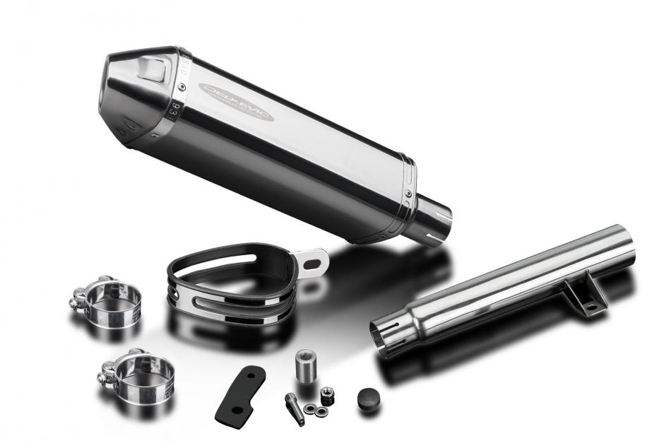 Replacement Silencer Kit for Yamaha SR500 with Delkevic 320mm Tri-Oval Stainless Steel Silencer. Delkevic silencers are handcrafted from the highest quality materials to enhance your motorcycle in both performance and looks. We guarantee to improve your riding experience at an unbeatable price. The vast majority of our silencer kits come with all gaskets needed.