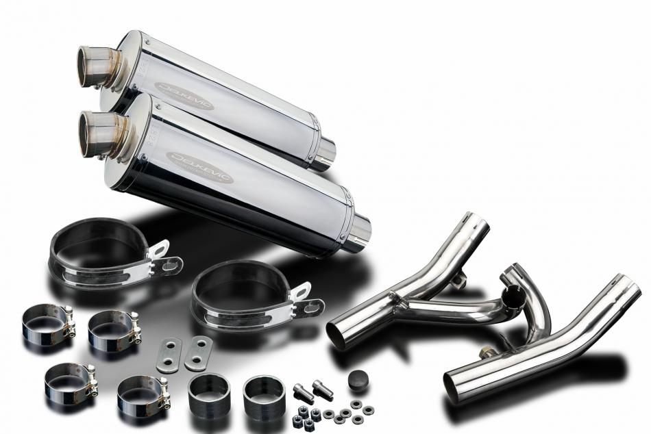 Replacement Silencer Kit for Yamaha V-Max 1700 (2009-2020) with Delkevic 350mm Oval Stainless Steel Silencer. Delkevic silencers are handcrafted from the highest quality materials to enhance your motorcycle in both performance and looks. We guarantee to improve your riding experience at an unbeatable price. The vast majority of our silencer kits come with all gaskets needed.