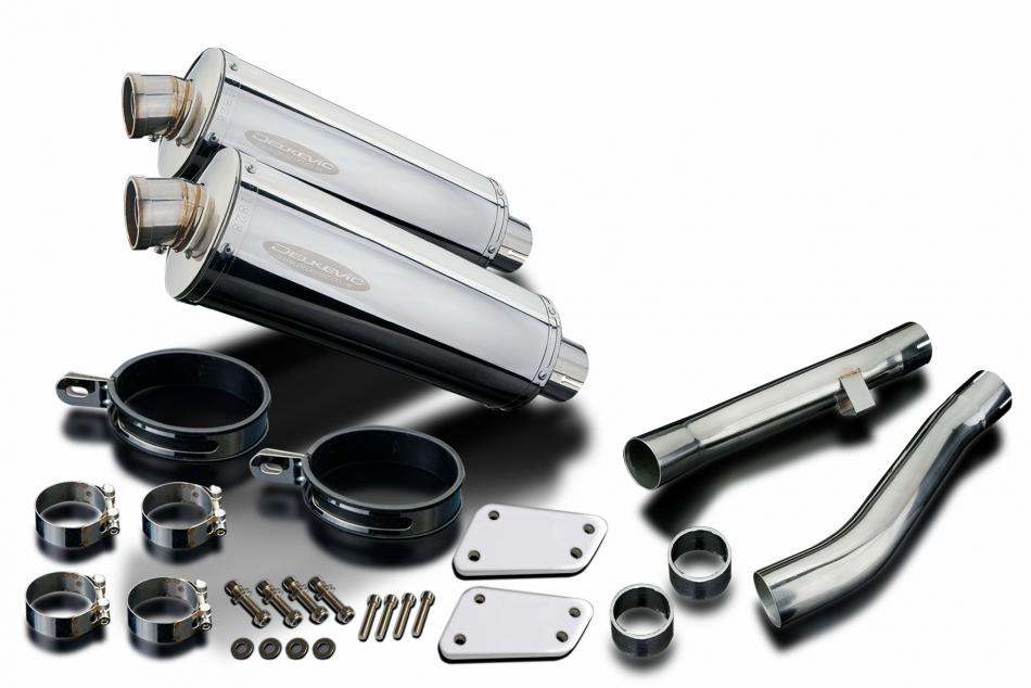 Replacement Silencer Kit for Yamaha XJR1300SP (1999-2001) with Delkevic 350mm Oval Stainless Steel Silencer. Delkevic silencers are handcrafted from the highest quality materials to enhance your motorcycle in both performance and looks. We guarantee to improve your riding experience at an unbeatable price. The vast majority of our silencer kits come with all gaskets needed.